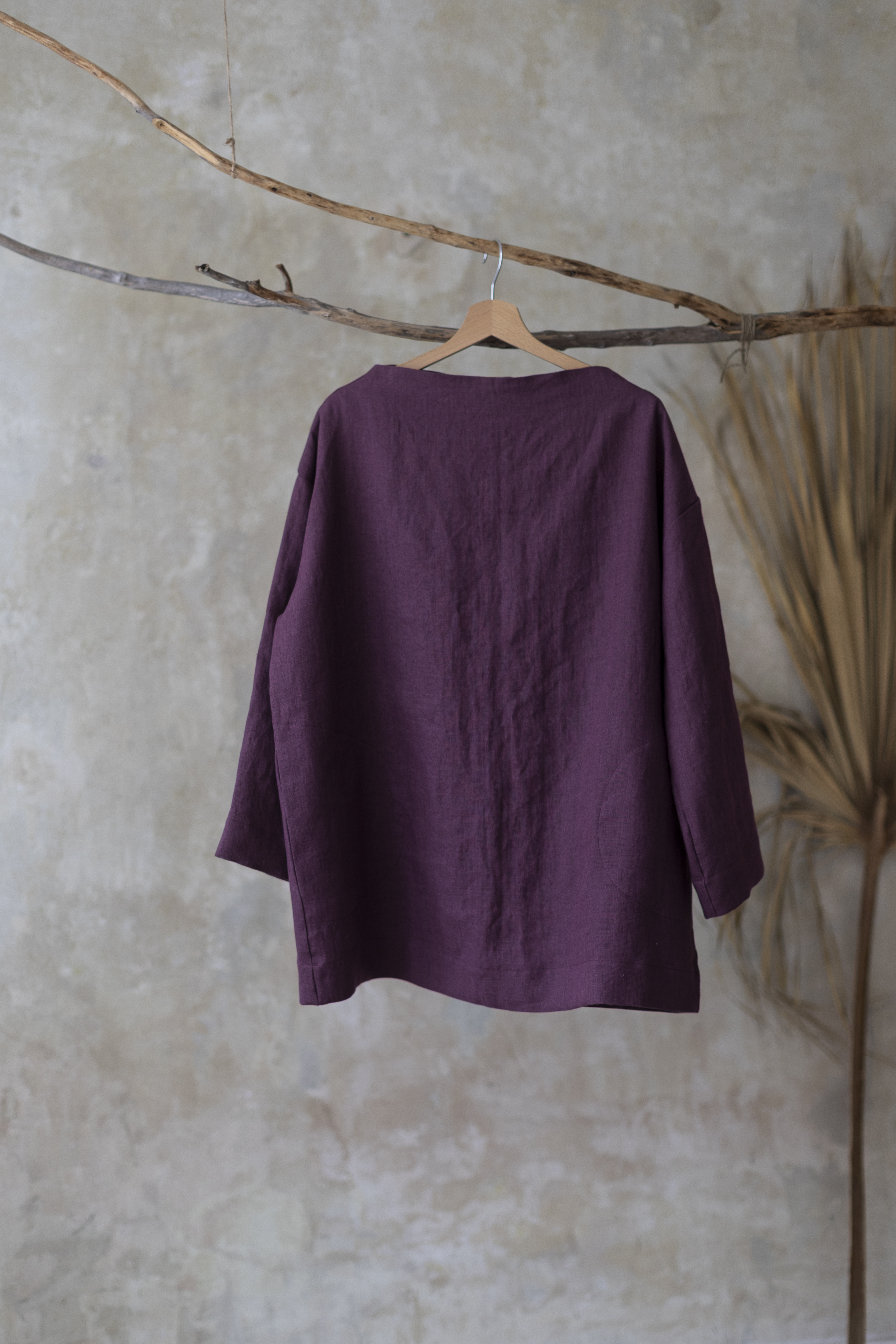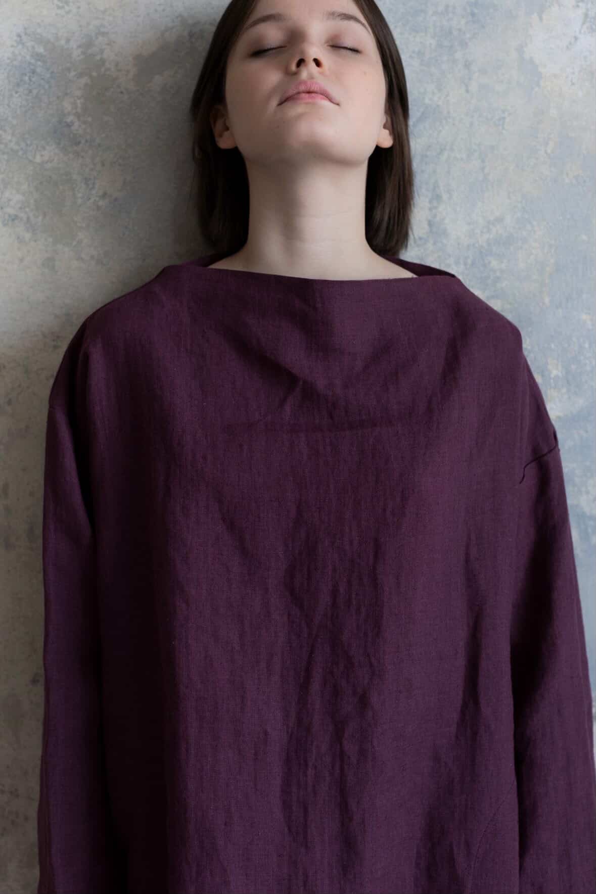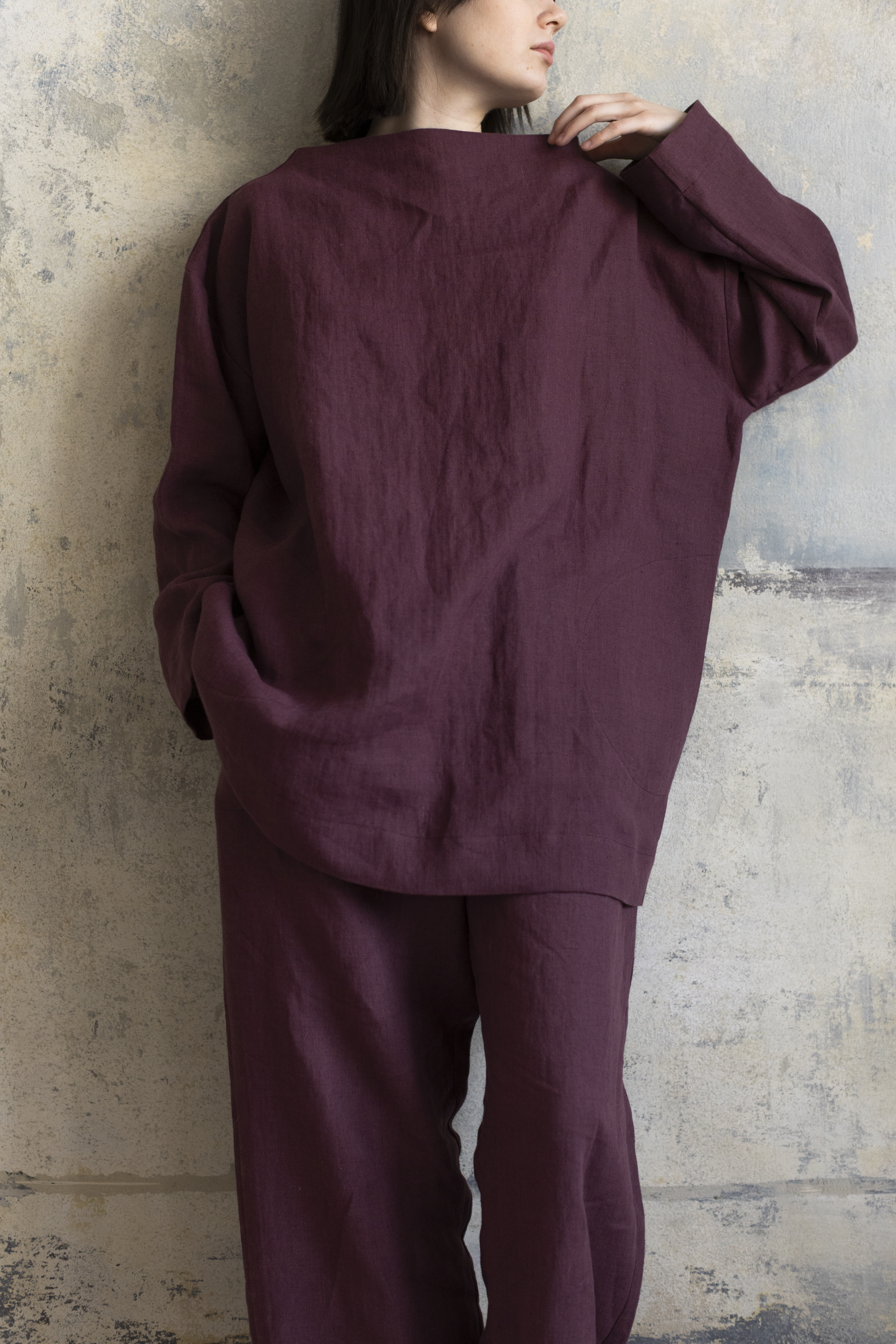 Minimalistyczna lniana bluza w kolorze prowansalskiej figi