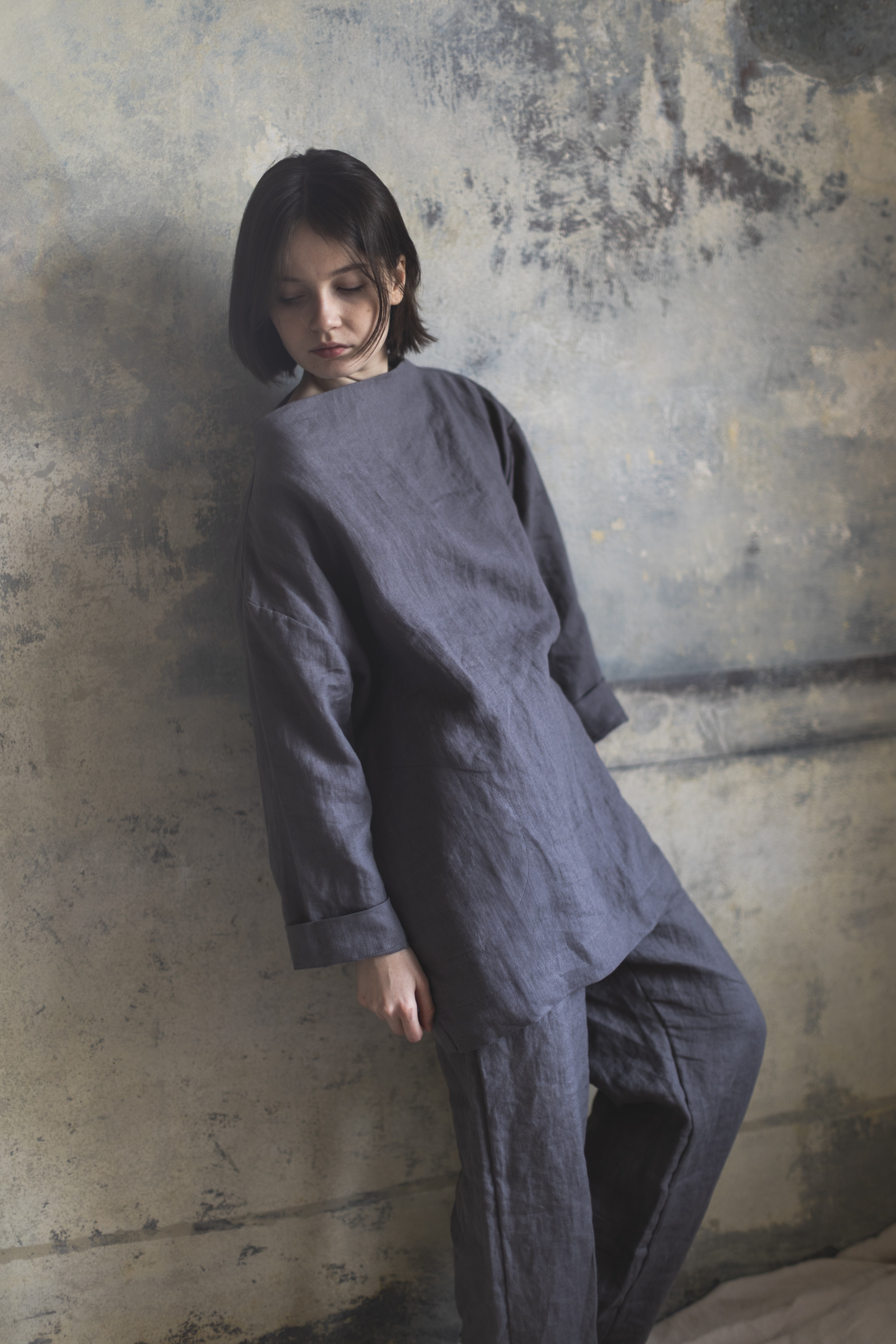Wykonana w 100% z wysokiej jakości lnu o gramaturze 230 g, zachwyca swoją strukturą — miękką, sprężystą i przyjemną dla skóry. Grubsza nić nadaje jej charakteru i trwałości, a jednocześnie pozwala zachować lekkość i komfort noszenia przez cały rok. To tkanina, która oddycha, pracuje z ciałem i z czasem staje się jeszcze piękniejsza.