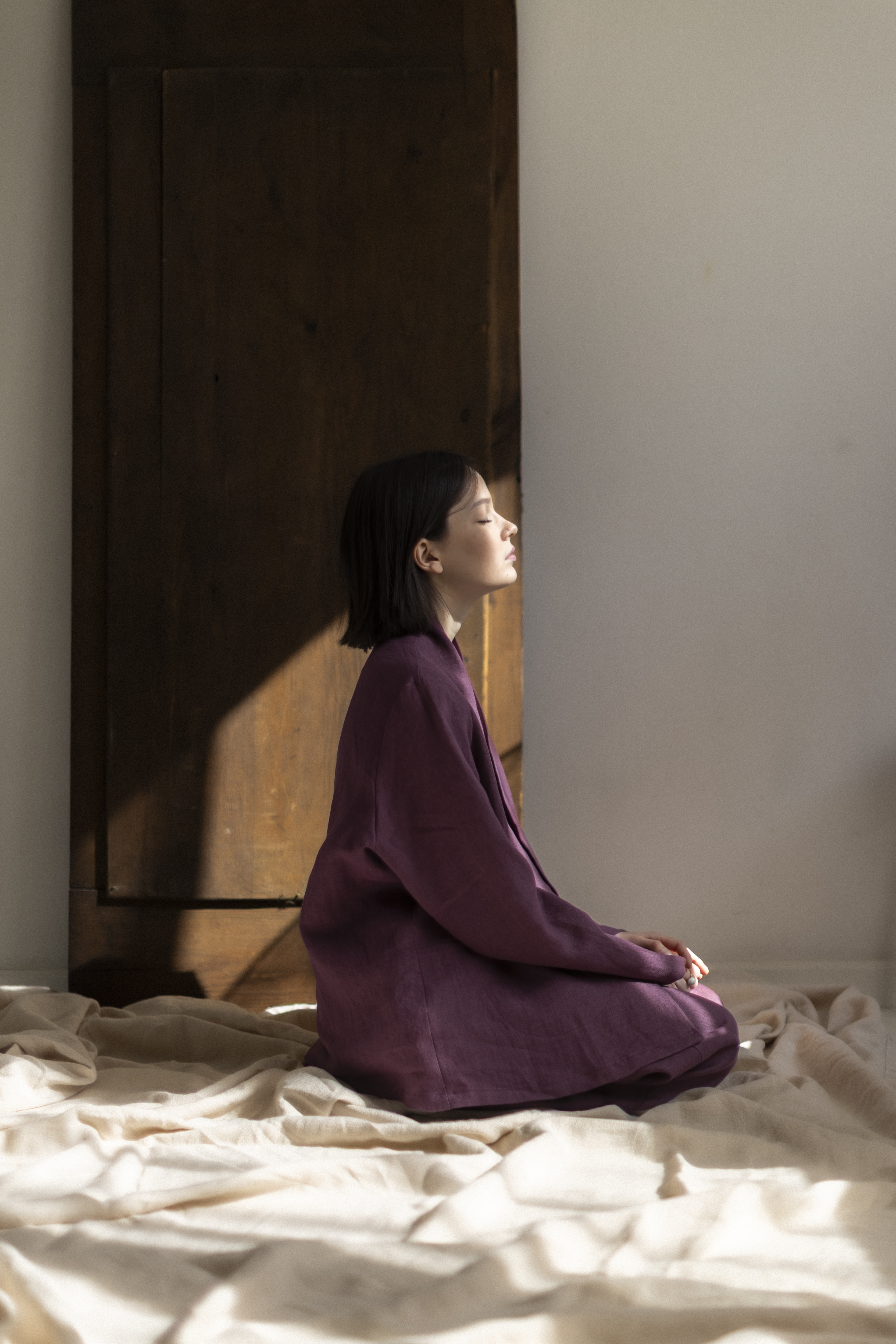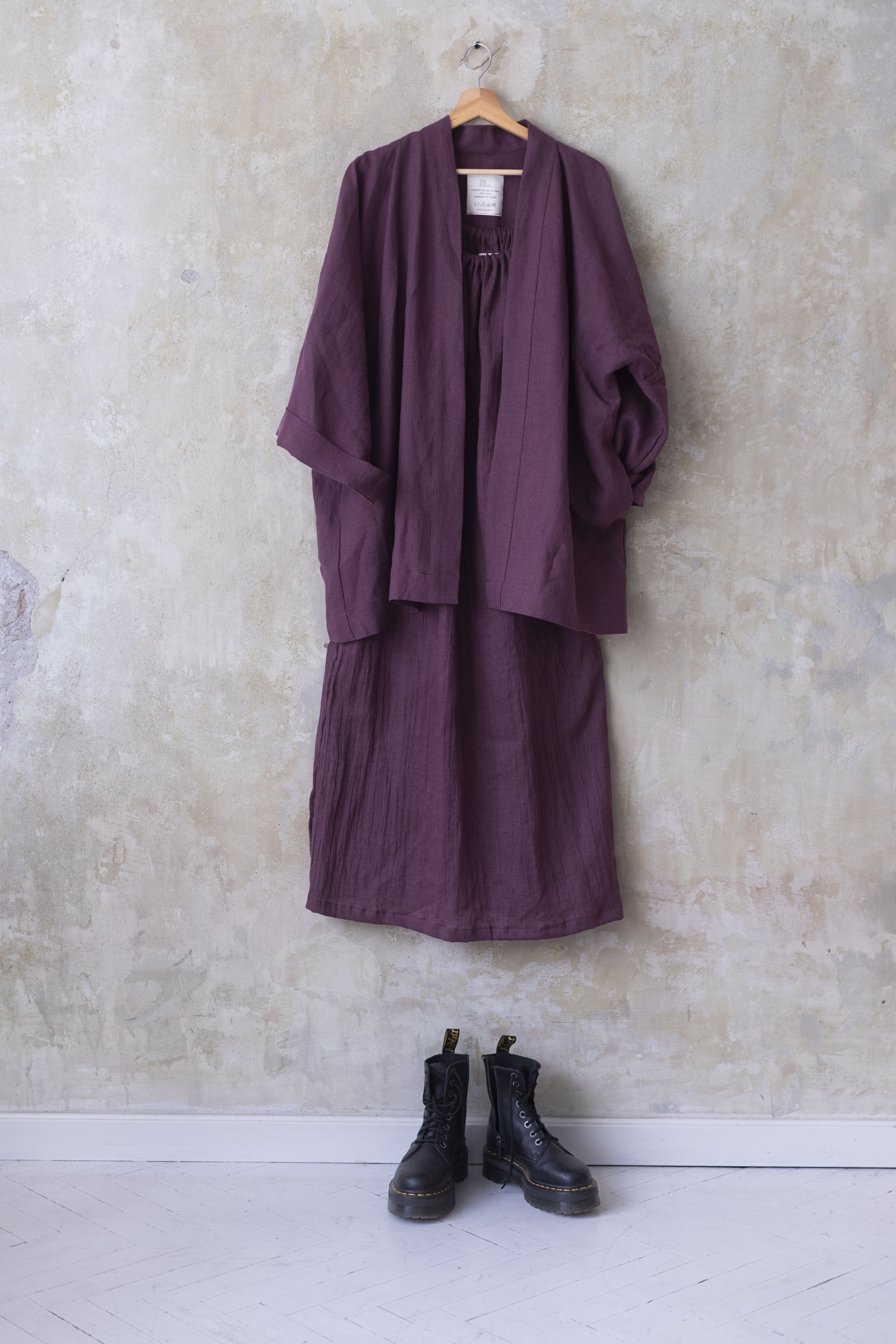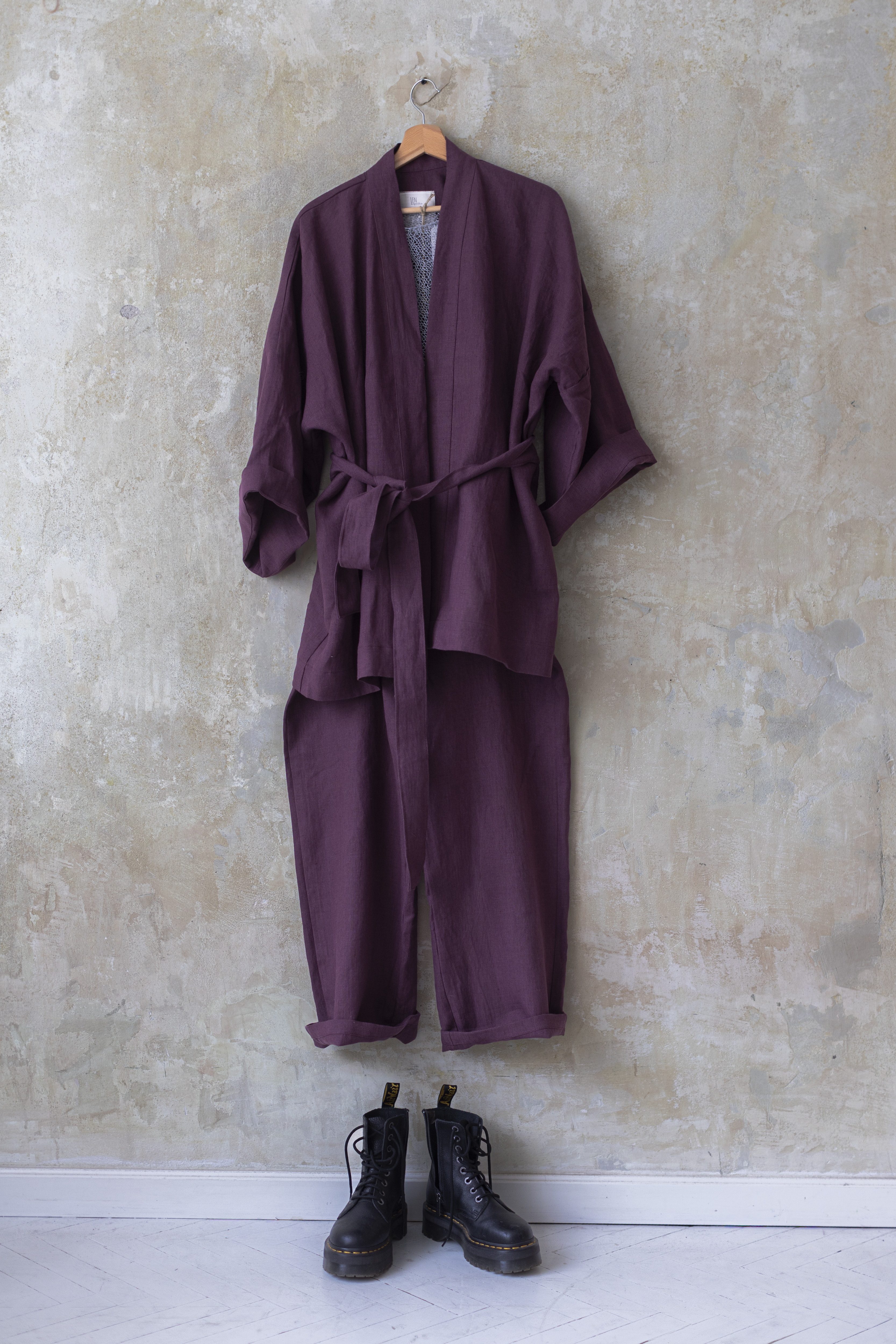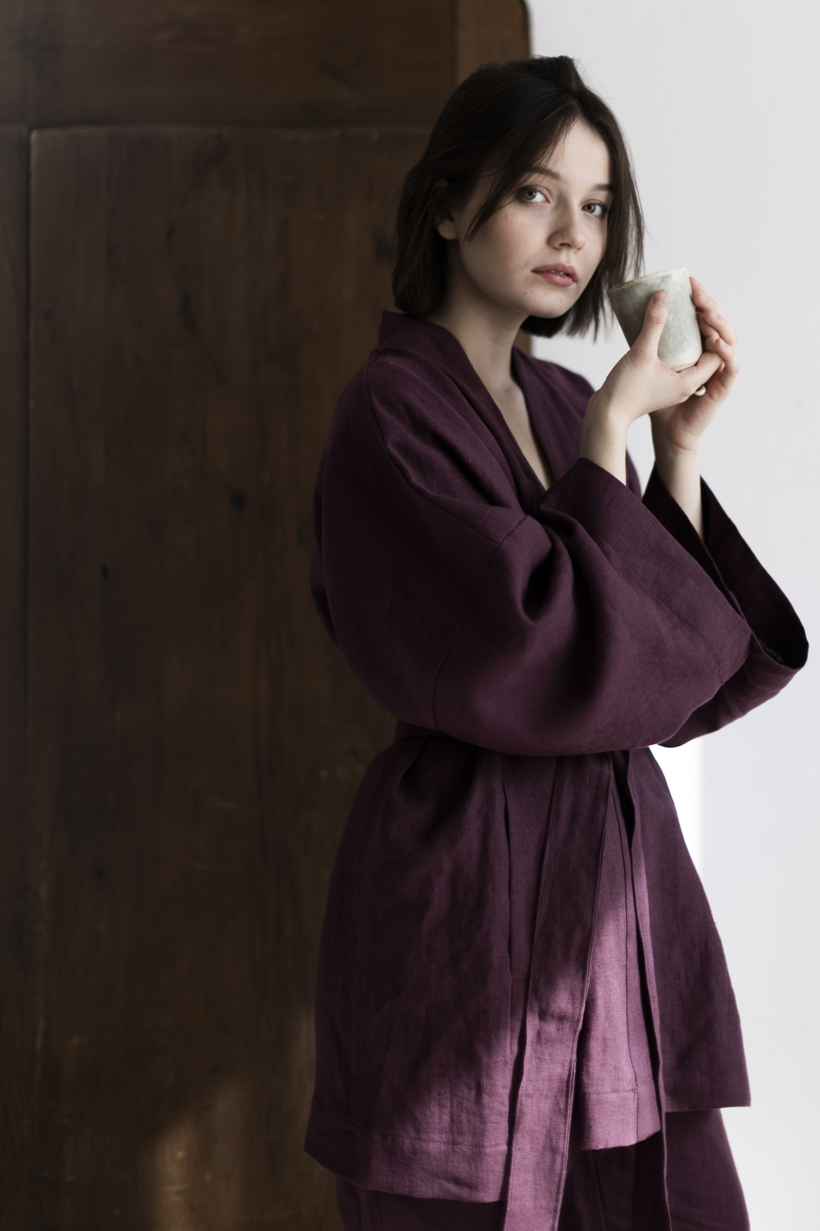 To nie tylko kimono. To chwila dla siebie — zamknięta w kolorze prowansalskiej figi, miękkości lnu i formie, która pozwala Ci być dokładnie taką, jaką chcesz.