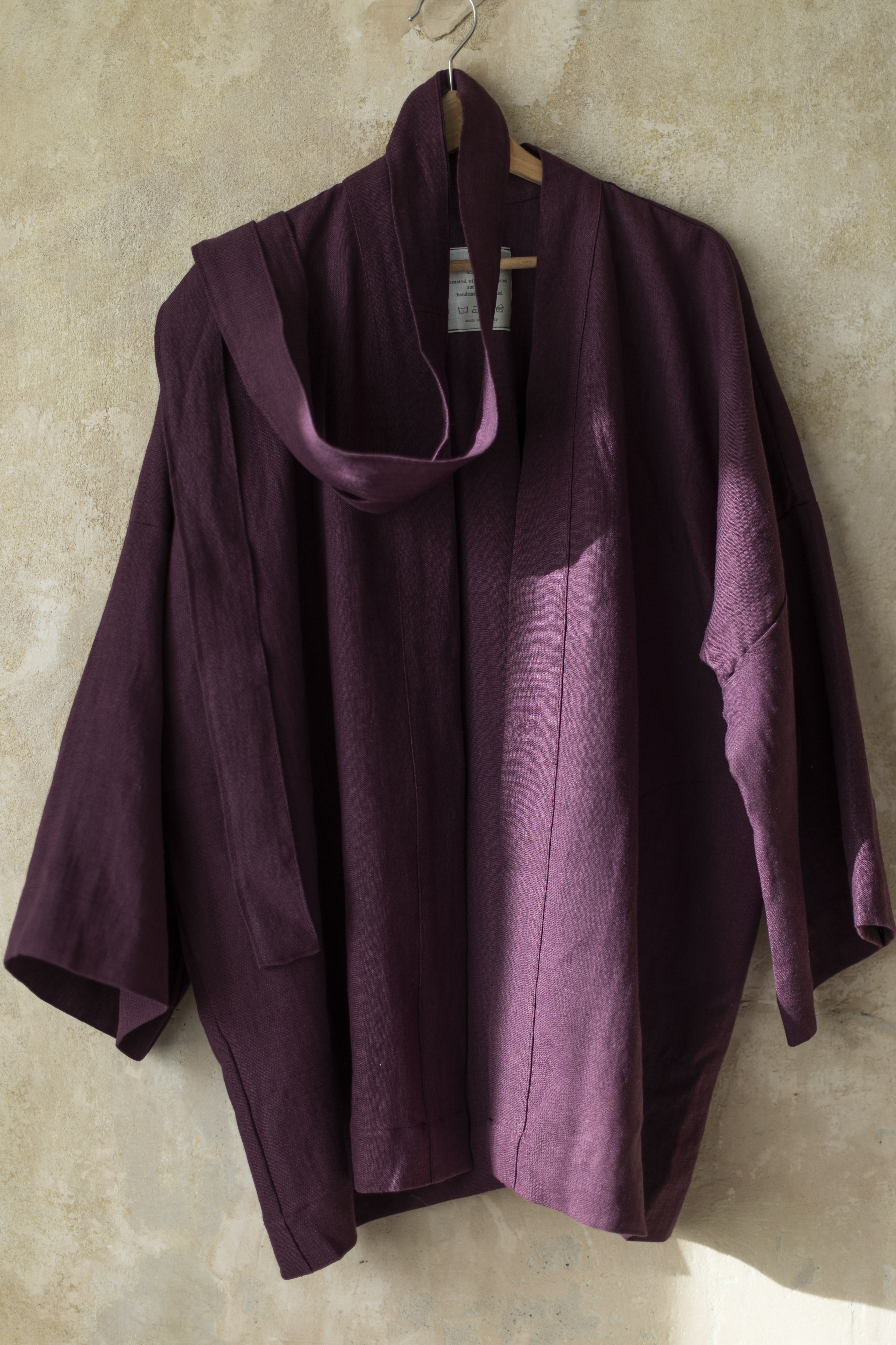 Każde kimono powstaje ręcznie w naszej kameralnej pracowni w Polsce — z uważnością, cierpliwością i szacunkiem do rzemiosła. Tworzone z naturalnych, ekologicznych materiałów, jest wyborem, który łączy estetykę z odpowiedzialnością. To sztuka użytkowa — bliska ciału i bliska naturze.