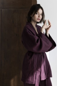 Krótkie lniane kimono w kolorze prowansalskiej figi – ręcznie szyte w Polsce