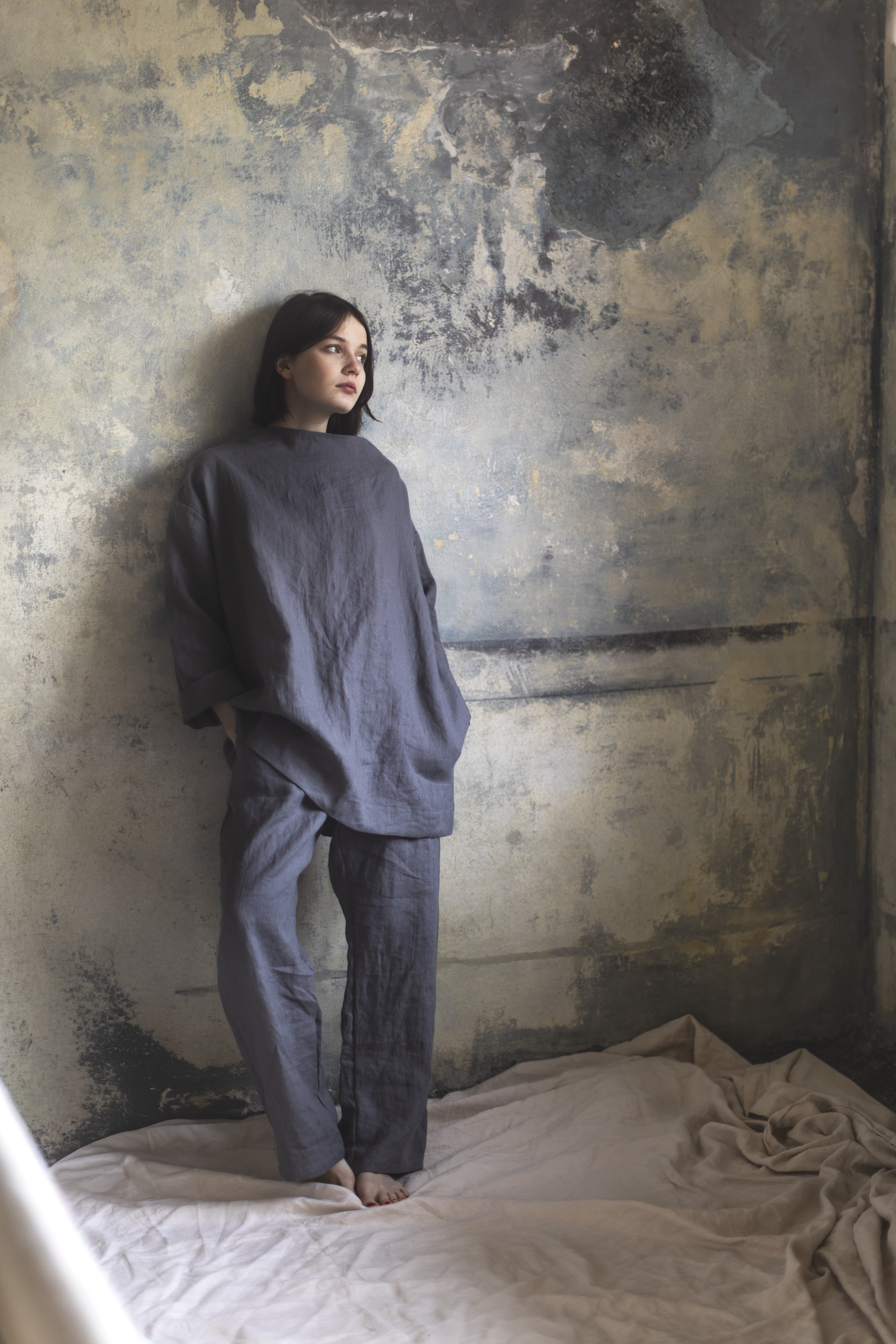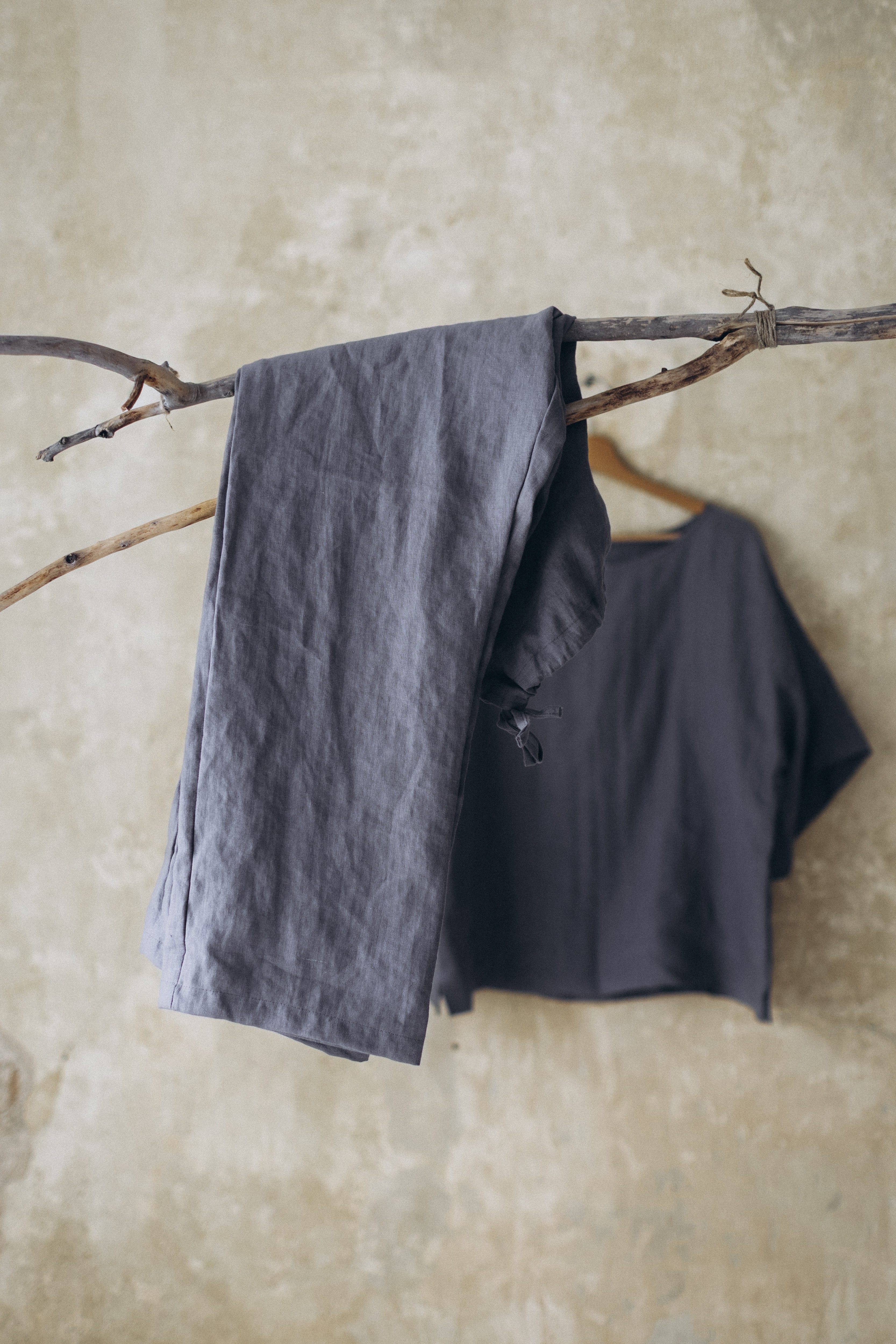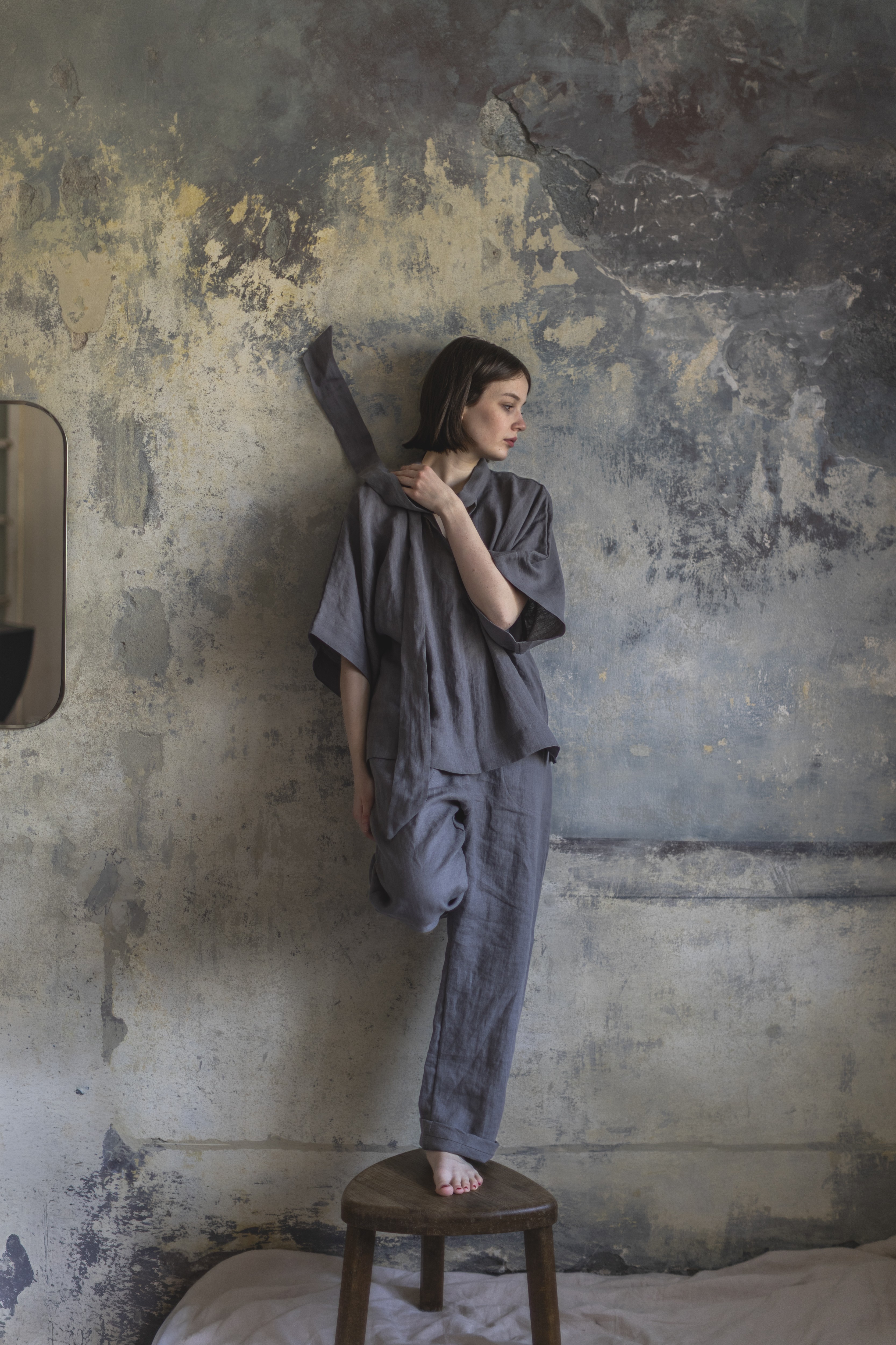 Uszyte ręcznie w naszej kameralnej pracowni z 100% naturalnego lnu o gramaturze 230 g, certyfikowanego OEKO-TEX® STANDARD 100, powstają z uważnością i szacunkiem do ciała. To nie tylko ubranie — to przestrzeń, w której możesz odetchnąć.