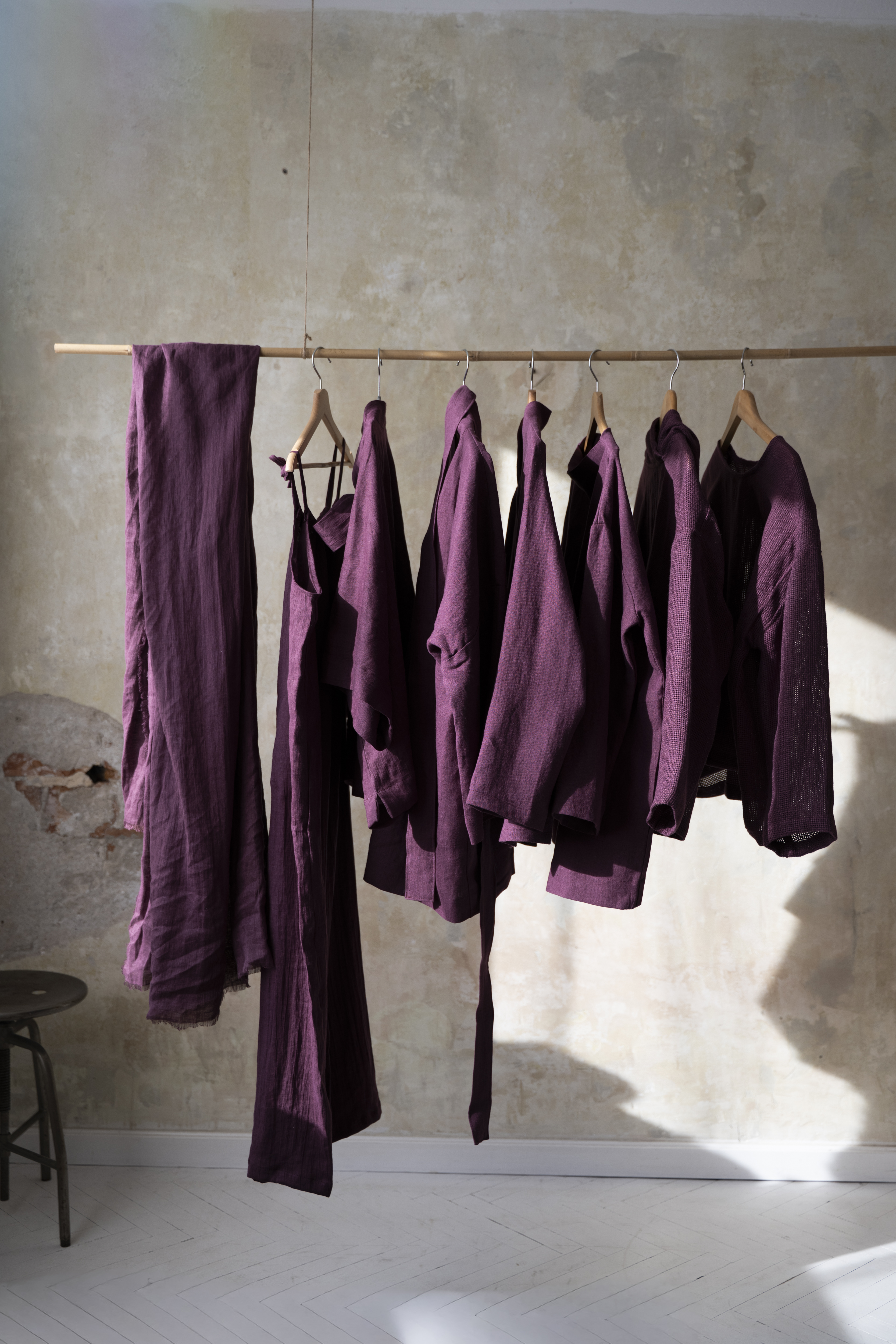 Lniany garnitur w kolorze prowansalskiej figi