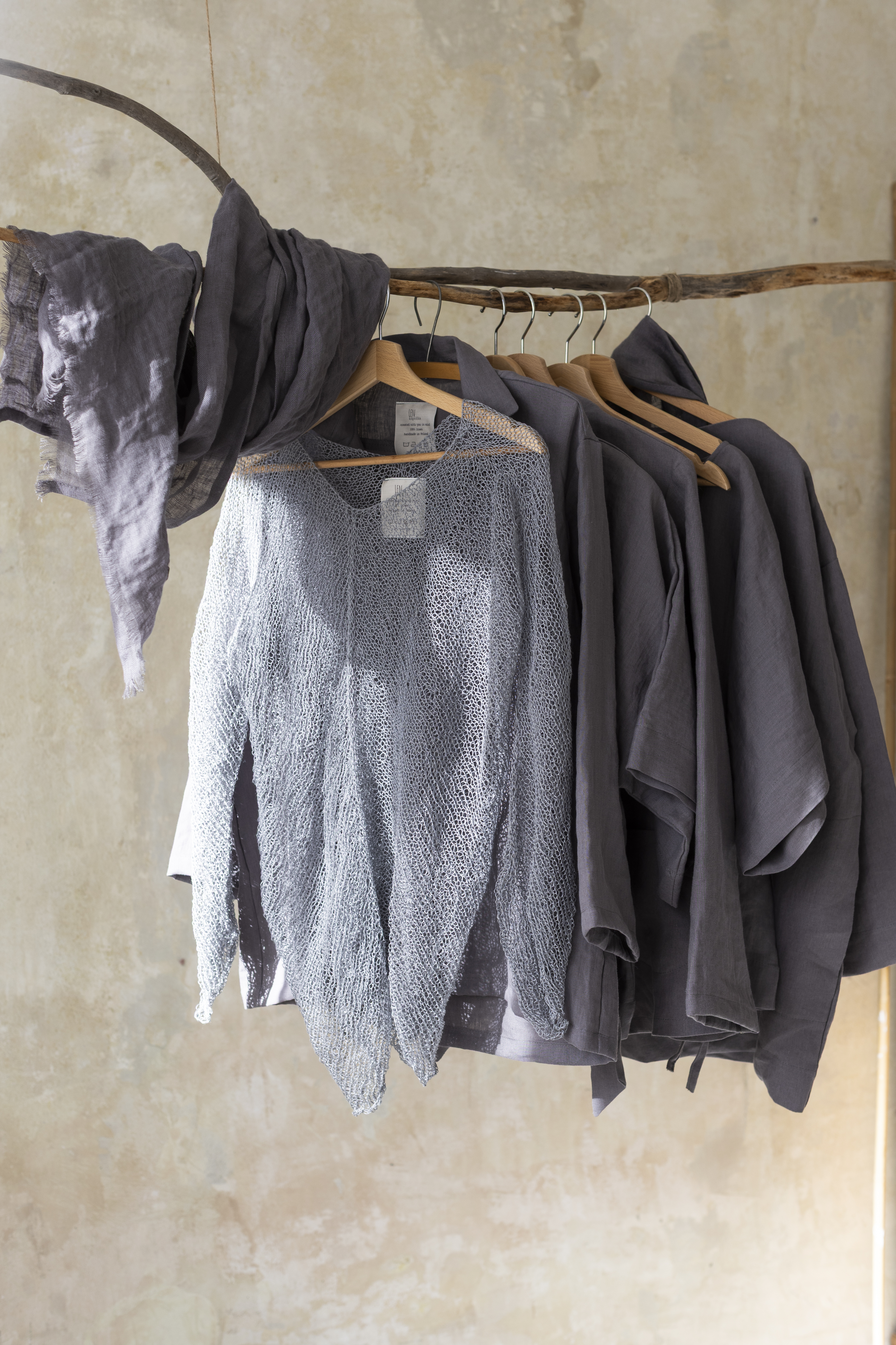 Są rzeczy, które otulają nie tylko ciało, ale i zmysły — stają się codziennym rytuałem spokoju. Lniany sweter w odcieniu szarego „Genius Loci” to opowieść o ciszy, harmonii i uważności, którą możesz nosić każdego dnia.