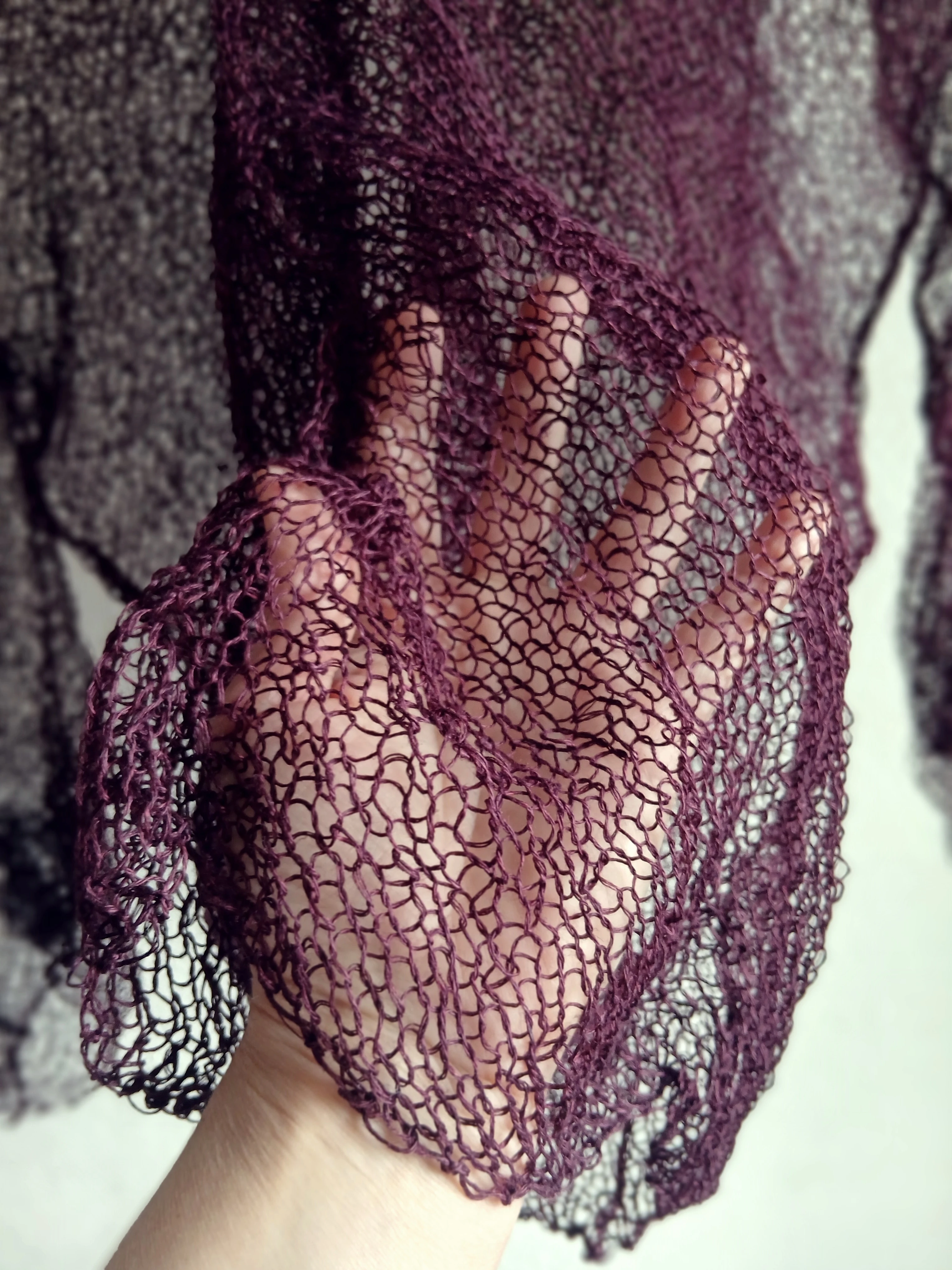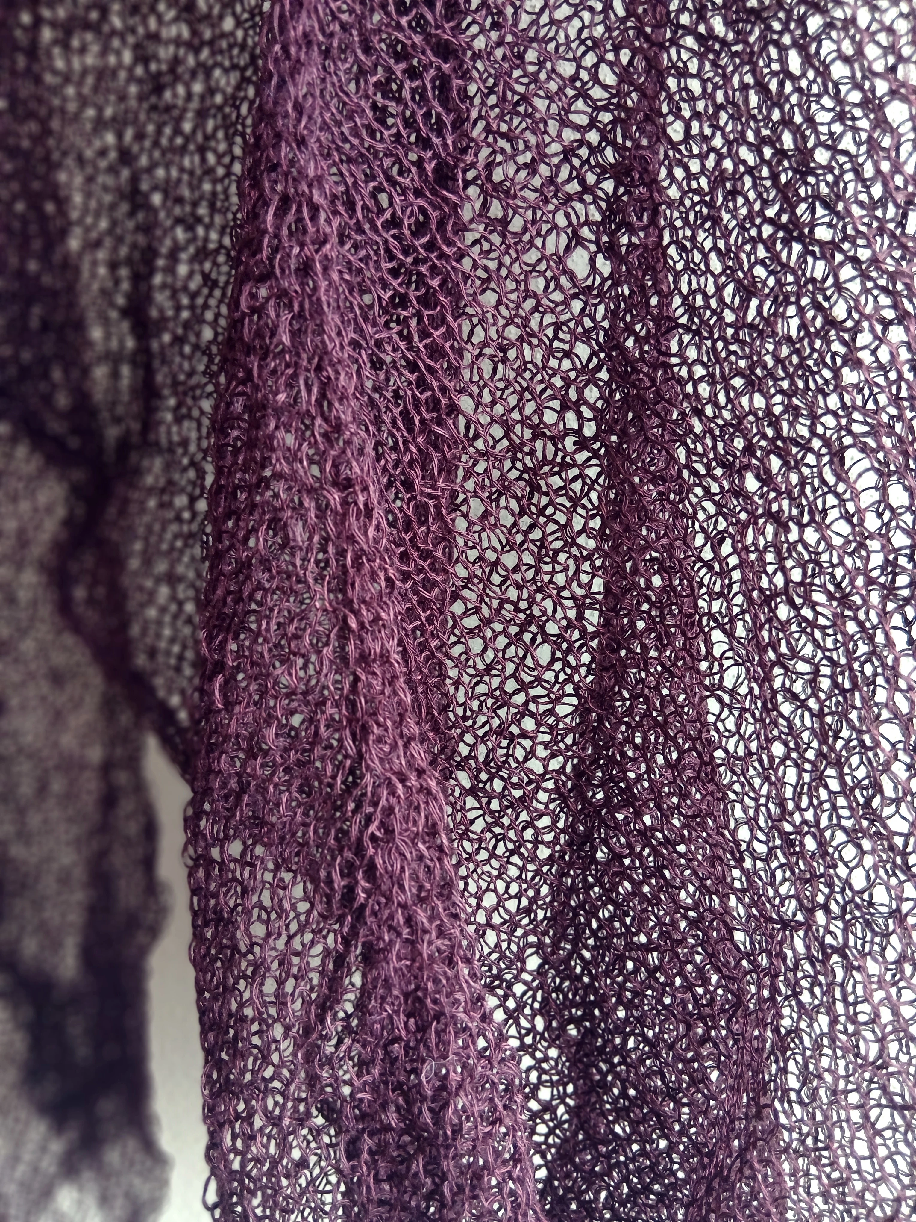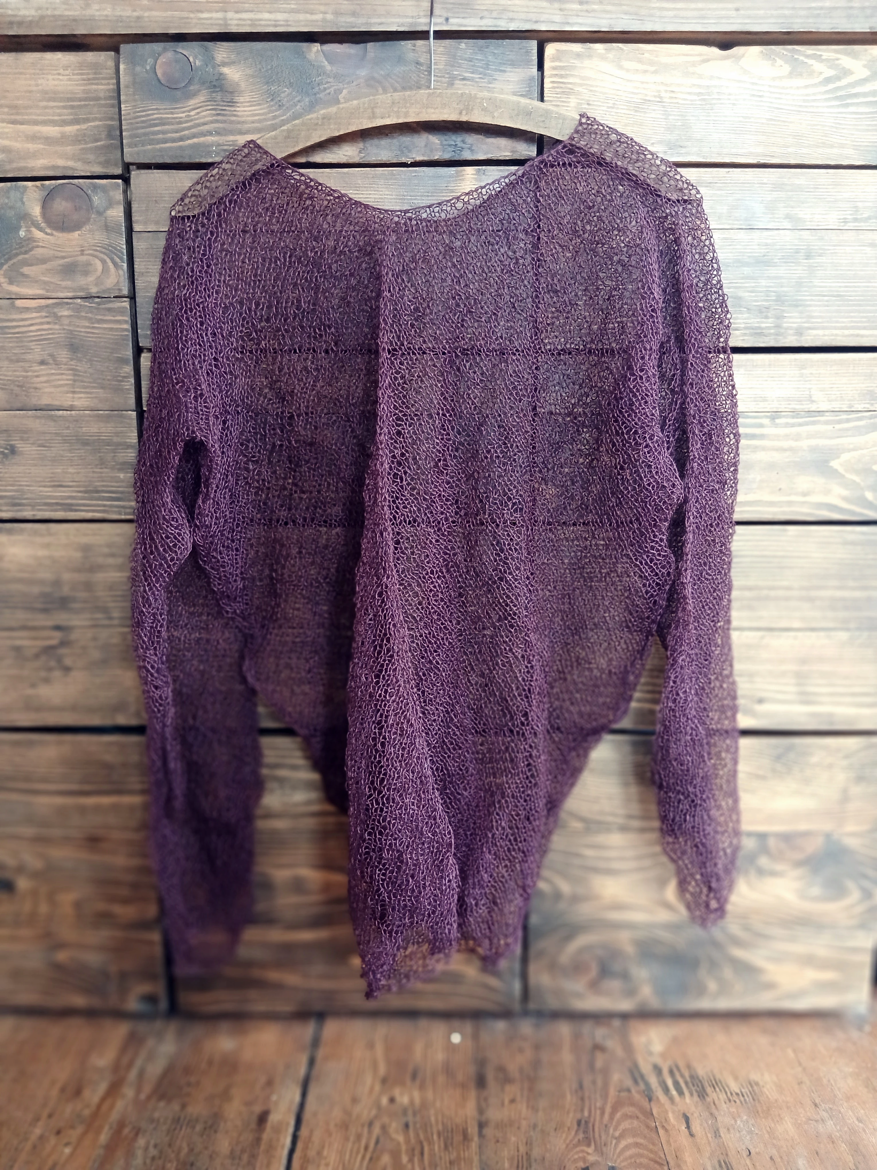 Lniany sweter damski kolor figa – ręcznie dziergany w Polsce