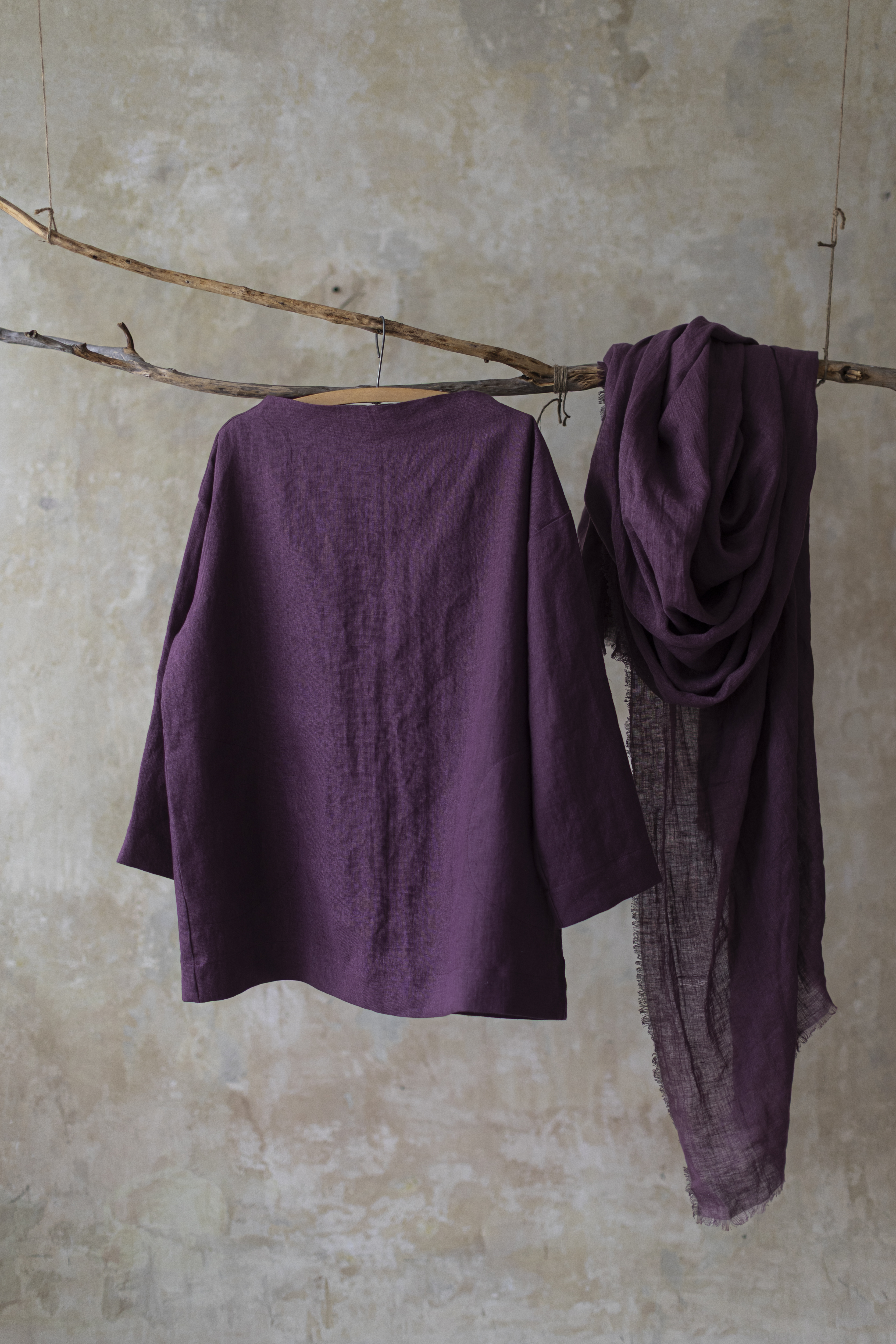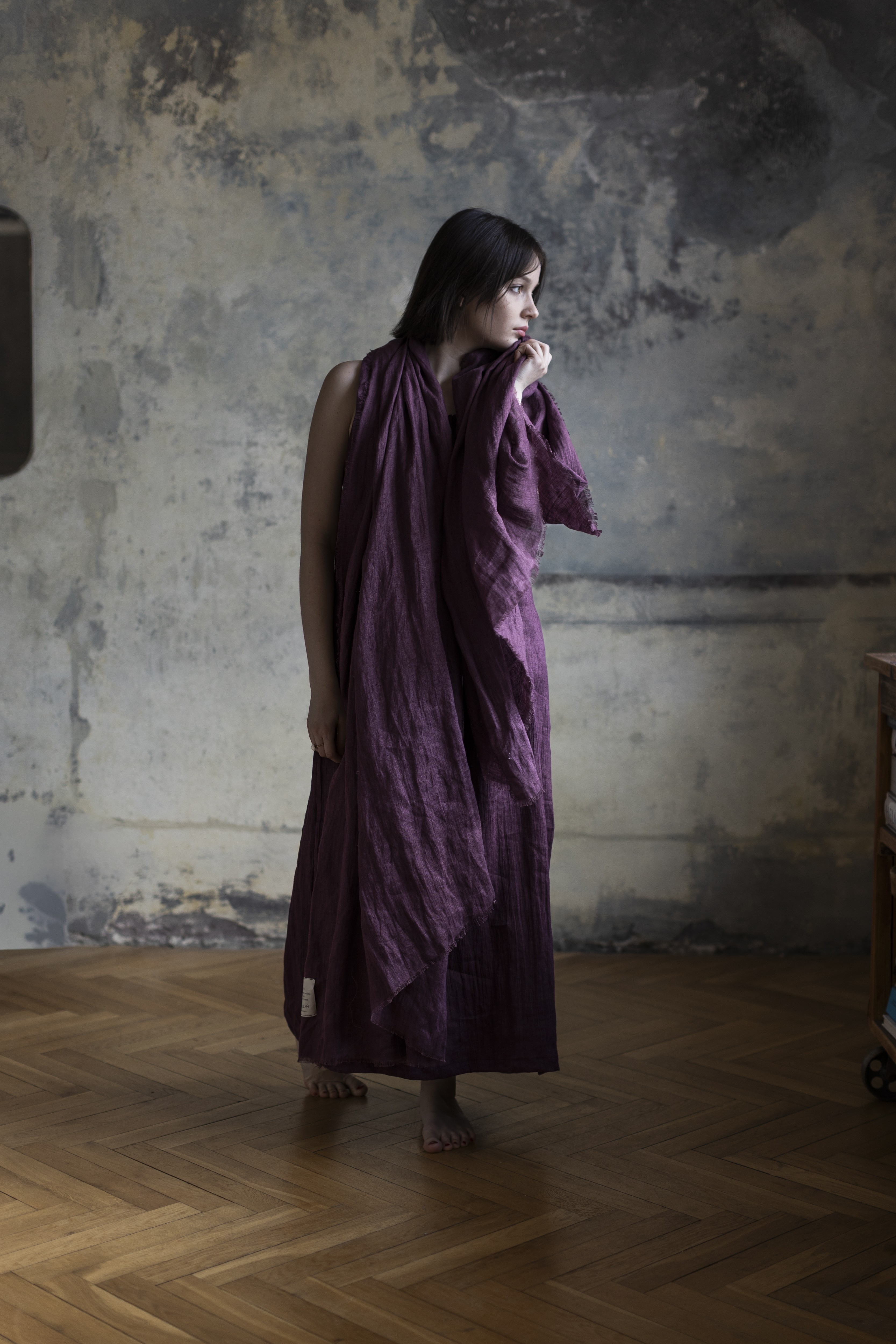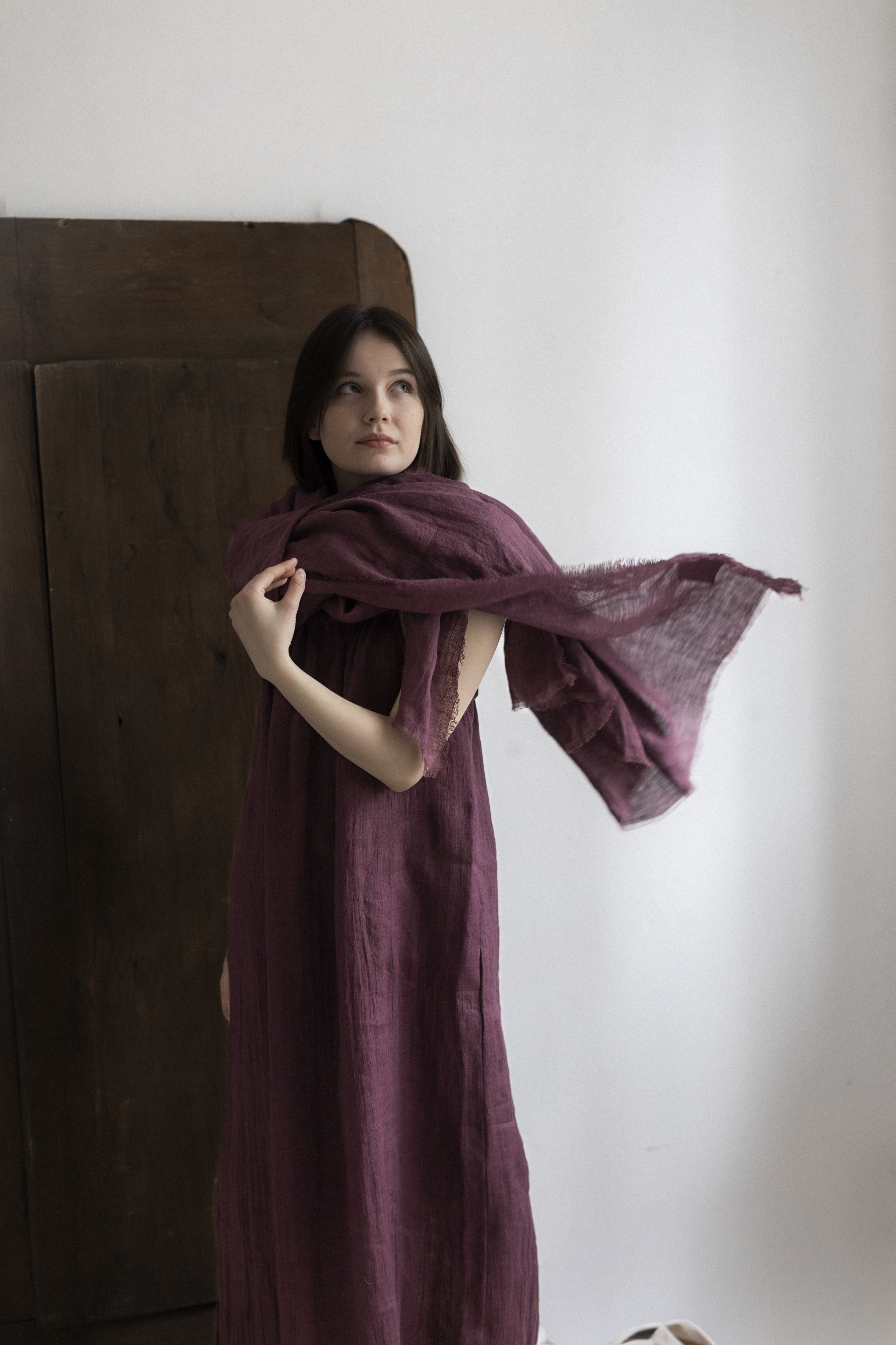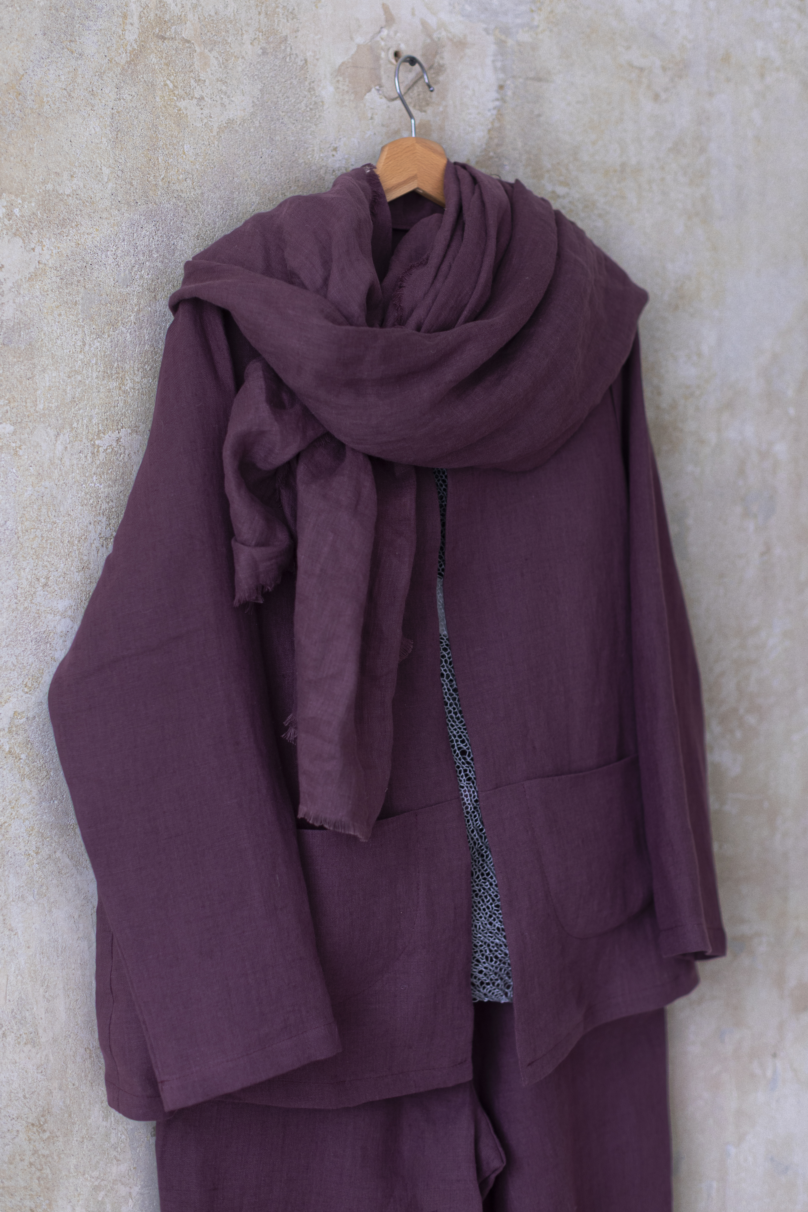 Lniany szal w kolorze figa