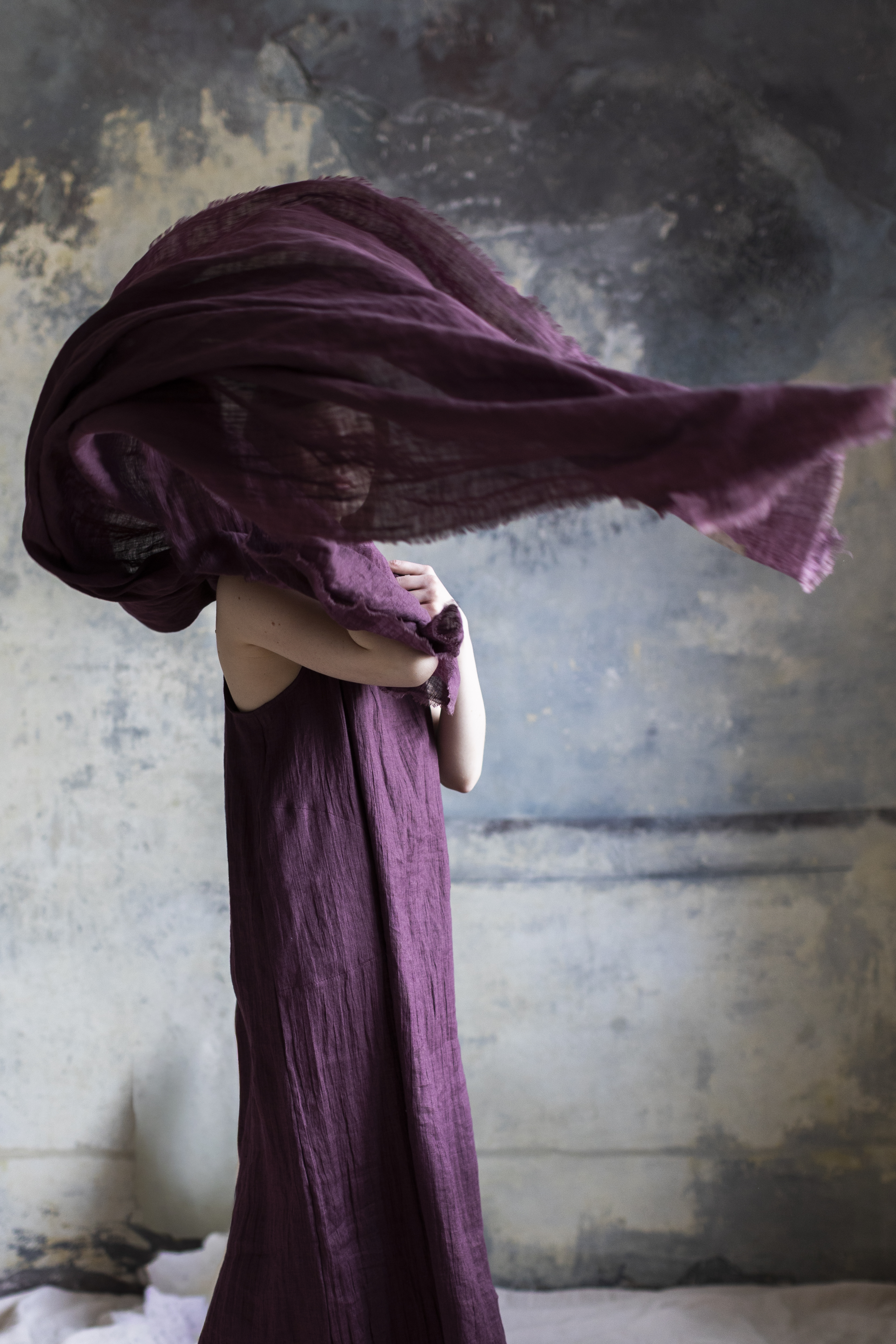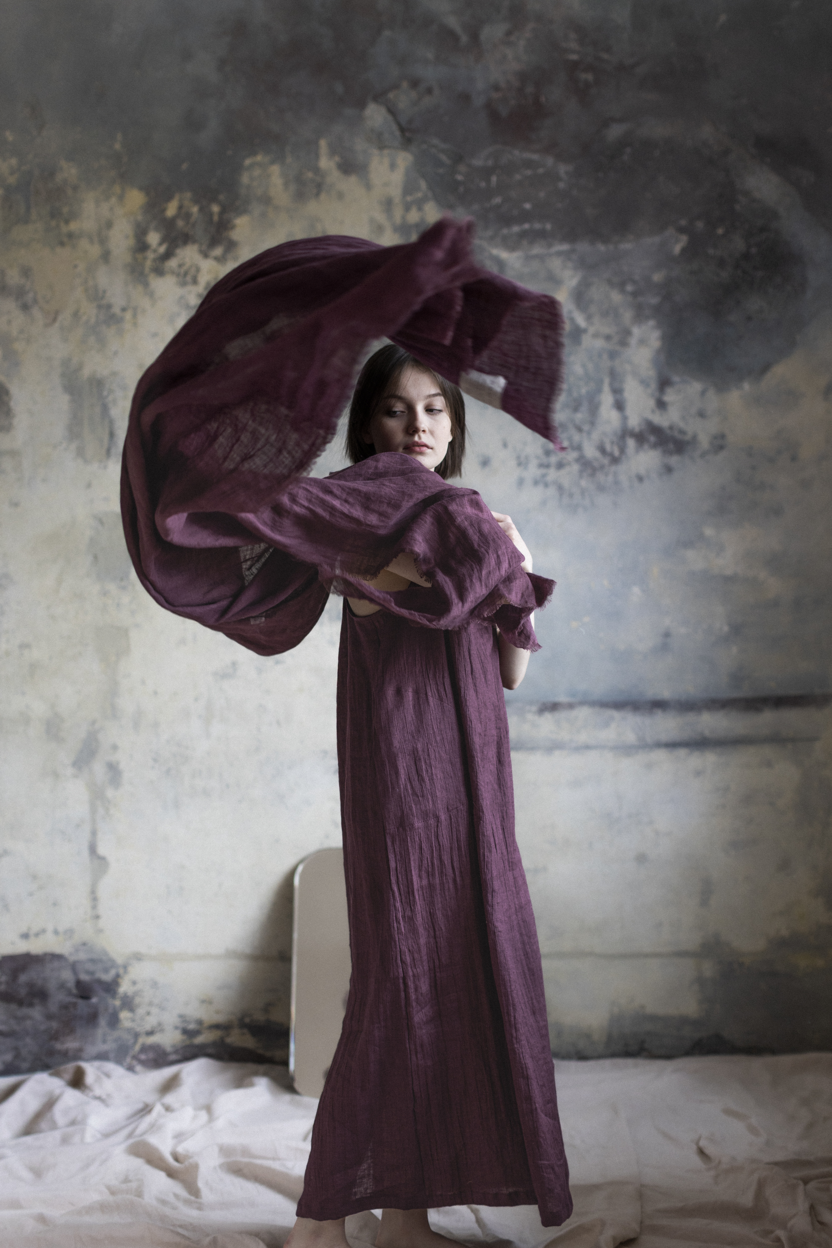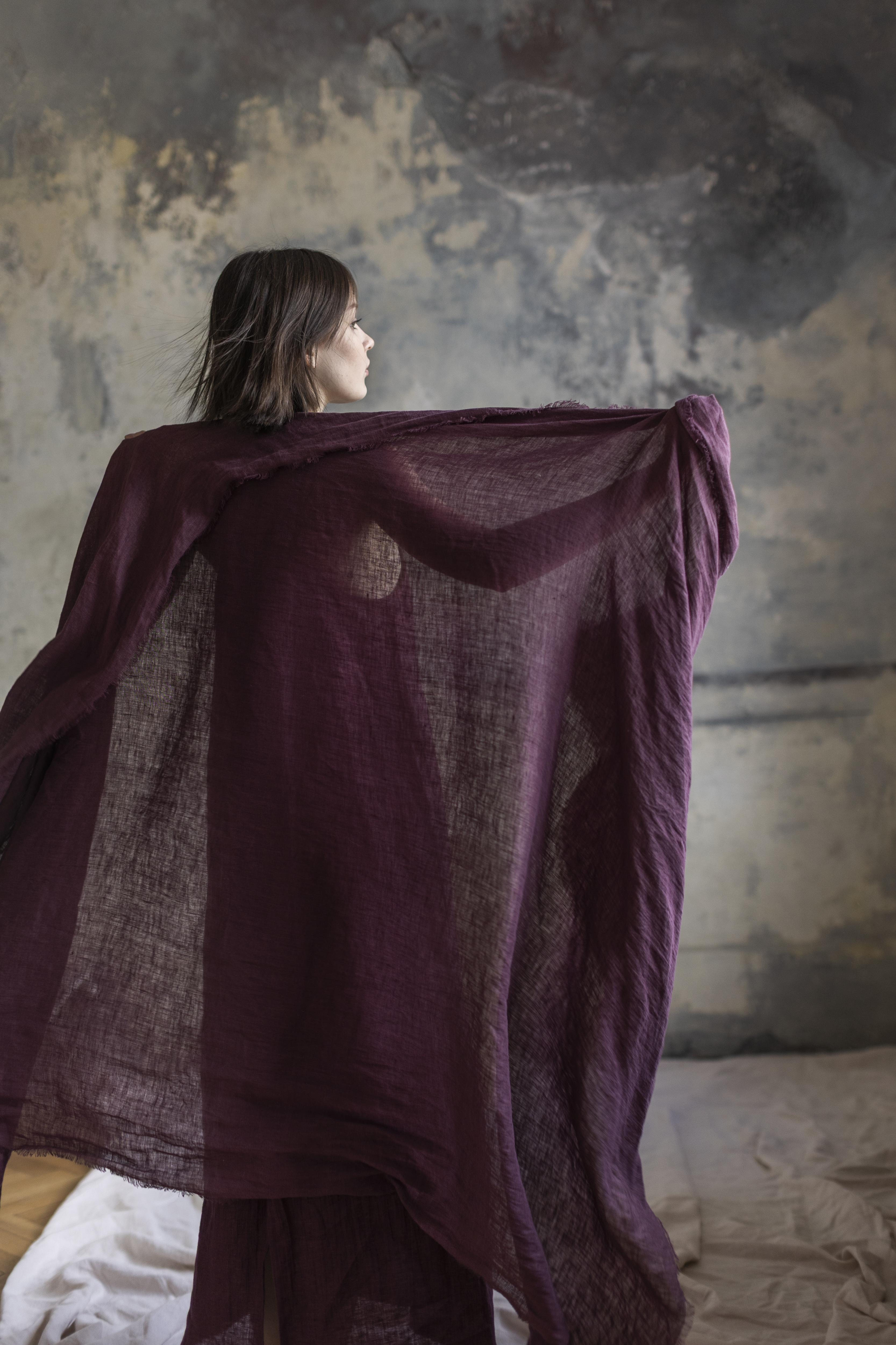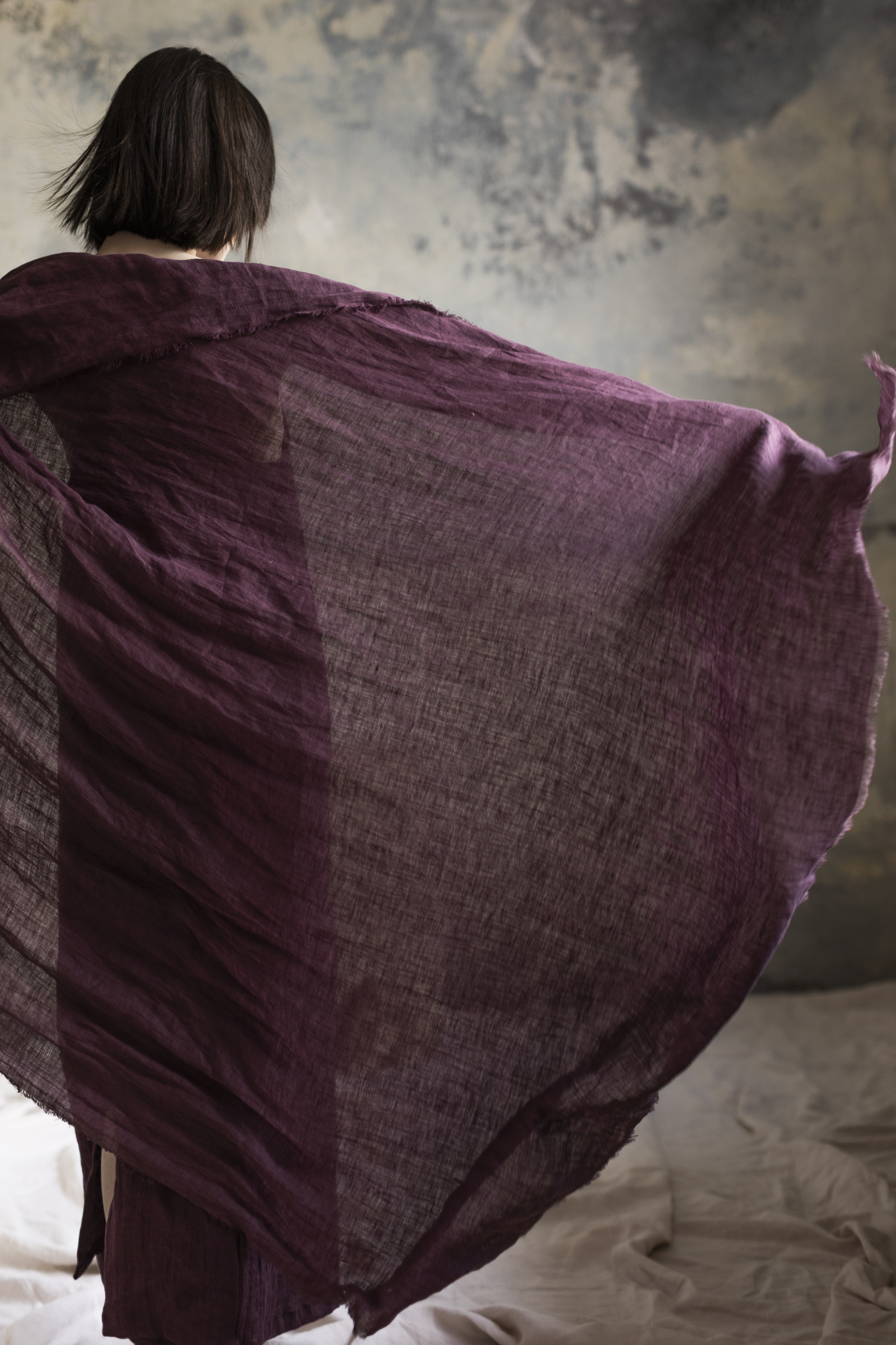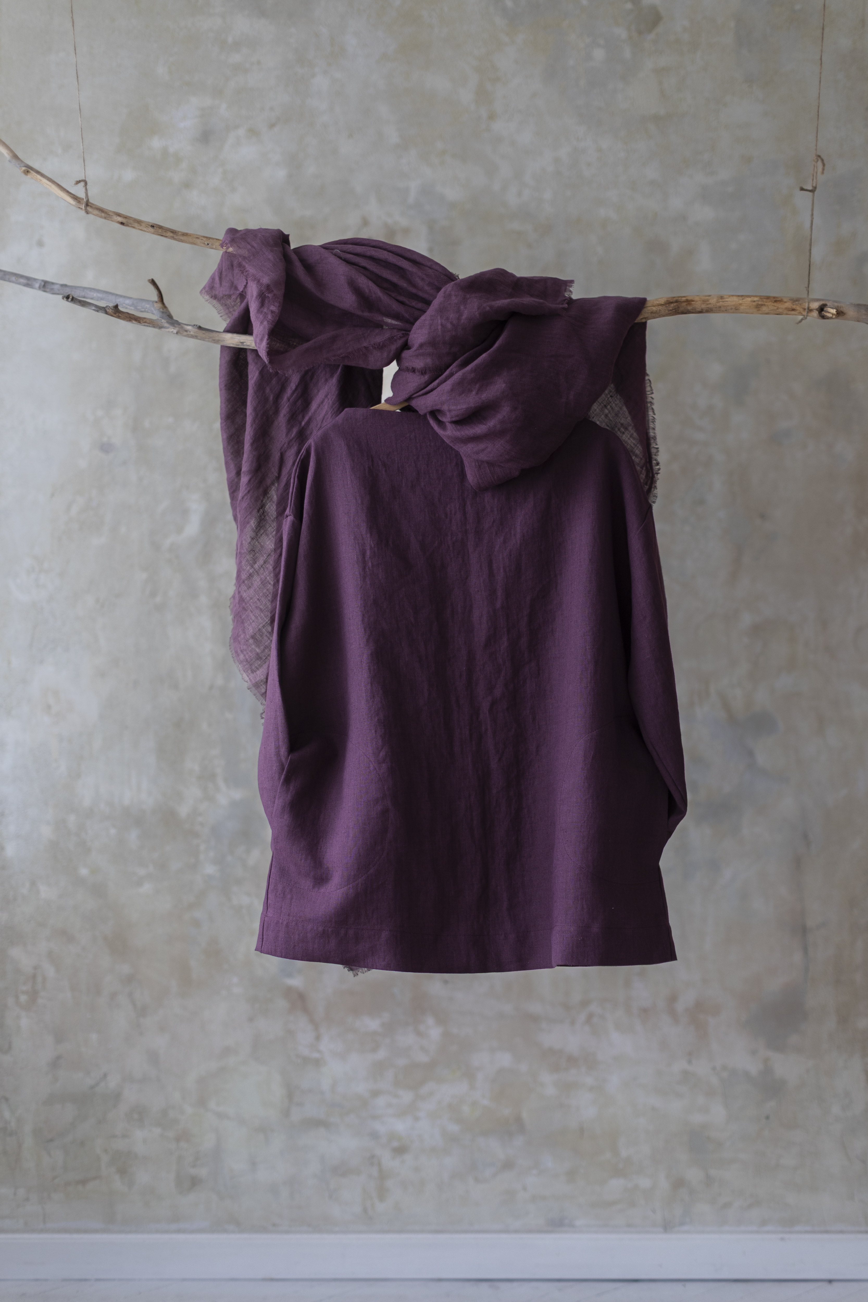 Lniany szal w kolorze figa